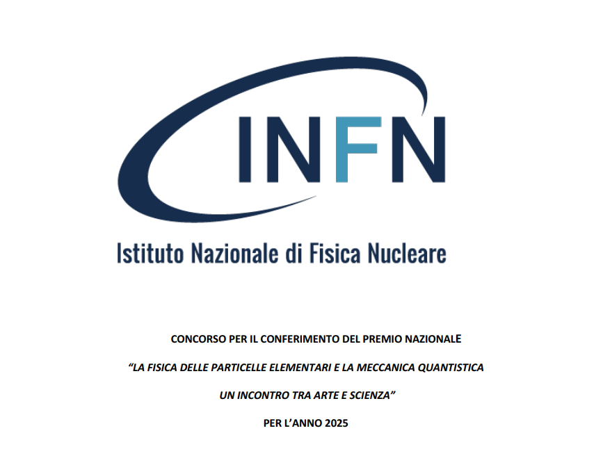 Concorso per il conferimento del Premio Nazionale “La Fisica delle particelle elementari e la meccanica quantistica un incontro tra Arte e Scienza” alle 5 miglior opere d’arte in grado di interpretare e raccontare in modo creativo e innovativo la fisica delle particelle elementari e la meccanica quantistica.